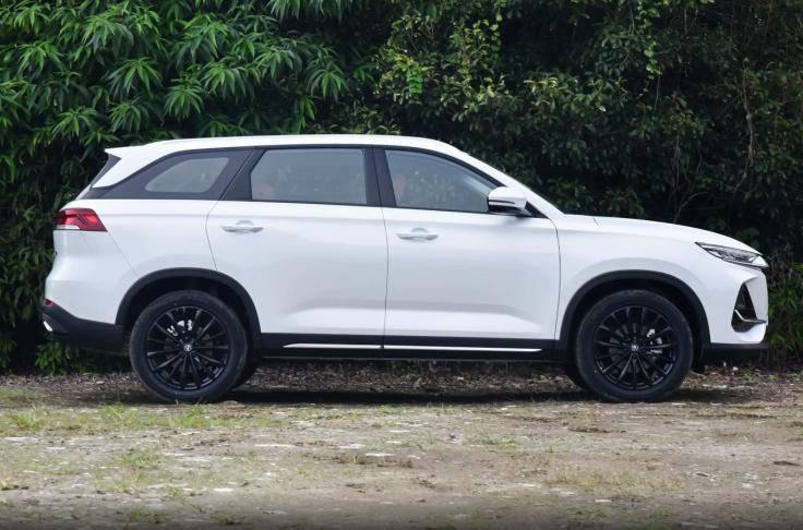 转向车身侧面来看,长安CS75PRO采用了相对硬朗平直的线条元素勾勒轮廓,车窗、侧裙、轮眉等区域均采用熏黑设计,为车辆增添了不少运动气息。熏黑色轮毂充满了运动气息,与悬浮式车顶设计呼应,强化了外观的时尚气息。