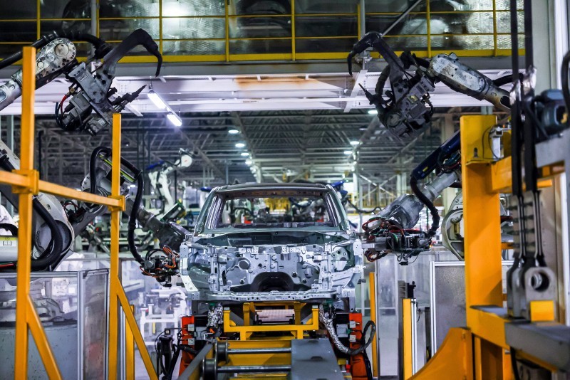 走进“铸就金刚铁骨”的焊装车间,金刚炮全车设计超5500个焊点,通过269台机器及关键点100%自动化焊接来保证焊接质量;通过采用全球领先的德国三坐标测量系统,对全车1400多个焊点进行检测,焊接参数群控系统等,确保焊接精度最小控制在70μm;车身螺柱焊智能在线检测系统,基于高精度机器视觉与深度学习算法,对焊装车身上的上百个关键螺柱焊点进行100%在线实时检测,实现缺陷的0流出。