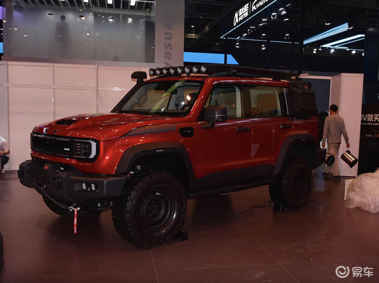 外观方面,两款新车倒是没有什么调整,继续延续家族经典“方盒子”造型,同时搭载专属设计彰显个性。悦野飞行版最引人注目的是车顶悬浮式气动美学机舱,作为无人机收纳舱,兼具收纳、充电与一键释放功能,造型科幻且实用性拉满。赤兔车型则会使用赤兔拉花装饰,搭配火焰红定制车漆,辨识度极高,同时配备扩充版轮眉、铝合金脚踏与高进气涉水喉,原厂改装件直接满足越野玩家需求,外挂式全尺寸备胎与竖向尾灯组则延续家族经典设计。