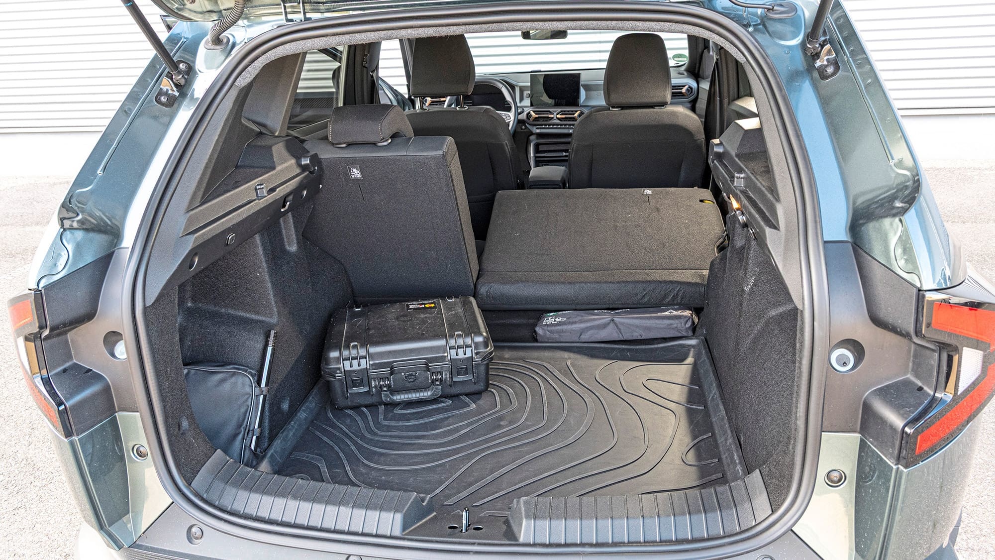 基础配置?是舒适吗?当然不是。雪铁龙不仅把“像沙发一样”的座椅放在前排,也在后排放上了一张柔软的长椅。即便在后排,这台C3 Aircross也能为两个人提供不拥挤的空间。第三个人?也可以偶尔坐。或者,当你放倒分体式靠背时,可以装下最多1600升行李。地板夹层可固定、可调高度,但那块笨重的遮物帘却无法在其下找到收纳位置。