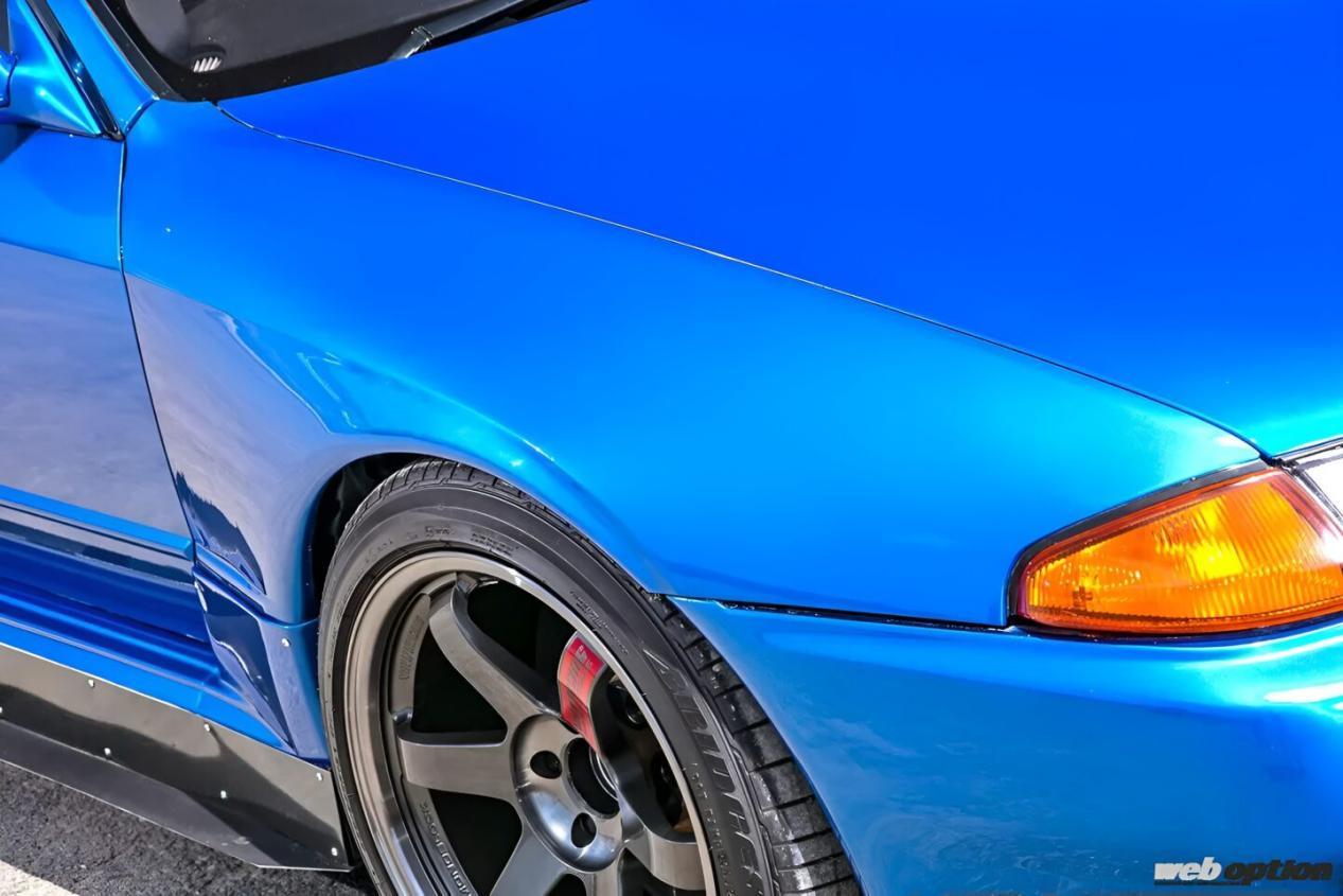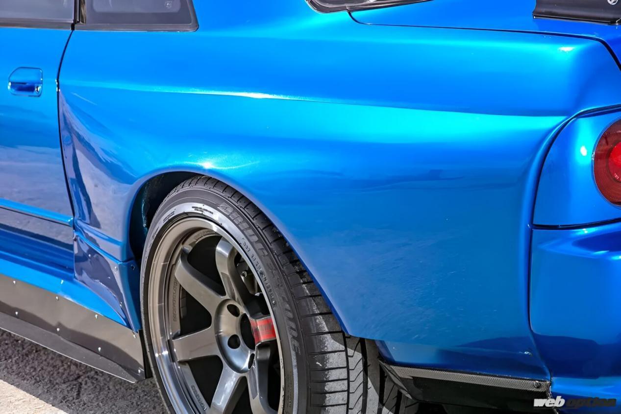 其次是车漆部分,车主出于对Trust BNR32演示车Greedy RX的钟爱,所以从该车的蓝色金属漆获取了灵感,但他认为如果和别人用一样的颜色就太无趣了,并最终调制出了属于自己的独特颜色。