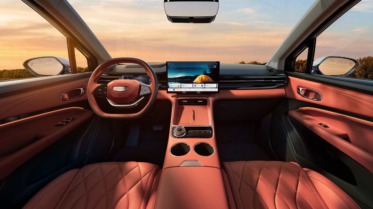 博越REV的核心技术,是靠吉利自研的超级铂金增程技术和神盾金砖电池撑起来。它搭载11合1增程电驱系统,高集成、轻量化设计。企业声称该车满电和馈电状态下动力输出一致,不会出现馈电后动力衰减的问题。数据显示,该增程器平台热效率47.26%,油电转化率为1升油能发3.77度电,馈电油耗可降低至4.95L/100km。