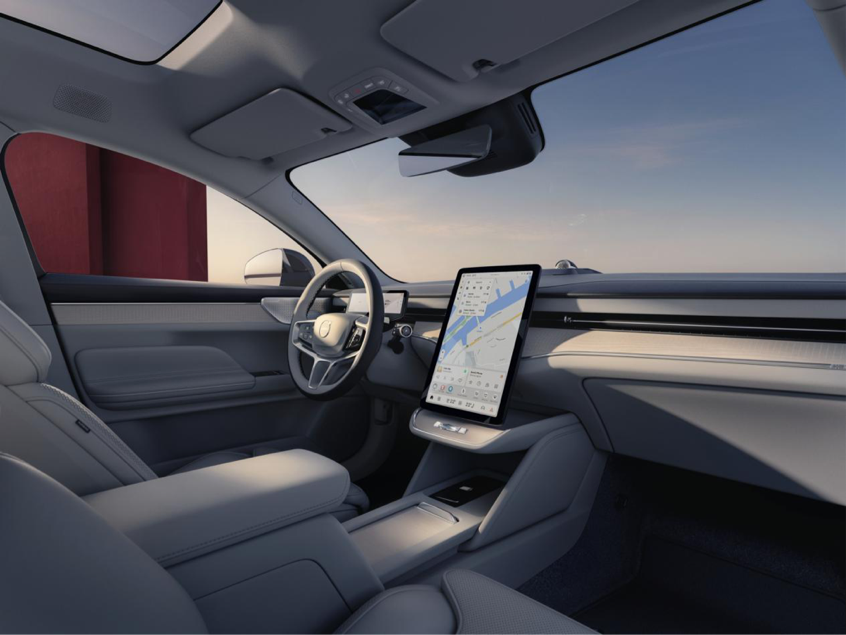 在舒适体验上,两款车型坚持北欧豪华美学,打造视觉、听觉、健康三重沉浸式体验。视觉层面,顶配车型均搭载雷神之锤高清像素大灯与维京战斧尾灯,EX90则标配“眨眼”雷神之锤大灯,500毫秒内可完成开合,并通过50万次开关循环测试,更有辨识度;新车座舱配备实木透光饰板与调光天幕,融合自然与科技氛围。
