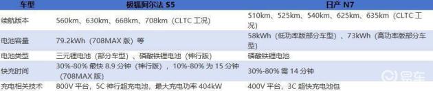 日产N7采用的是400V平台,3C倍率快充,从30%充至80%最快仅需14分钟。虽然看起来充电时间也不长,但与极狐阿尔法S5相比,由于平台电压和充电倍率的差异,在整体充电速度上还是稍慢一些。特别是在需要快速补充大量电量时,极狐阿尔法S5的充电速度优势会更加明显。对于那些没有私人充电桩,经常依赖公共快充桩的用户来说,极狐阿尔法S5更快的充电速度能带来更好的使用体验。