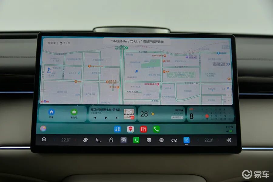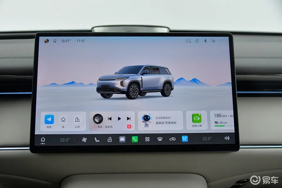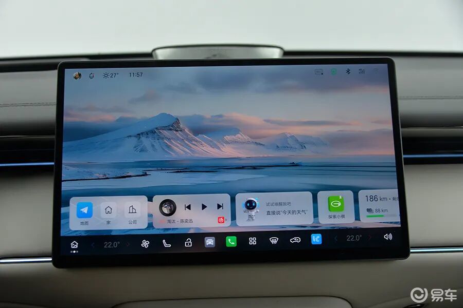 中控屏使用了一块15.6英寸液晶触摸屏,使用了一颗骁龙8295P芯片。系统流畅度还不错,支持三种风格桌面切换。同时,还支持CarPlay、HiCar和CarLink等投屏功能。