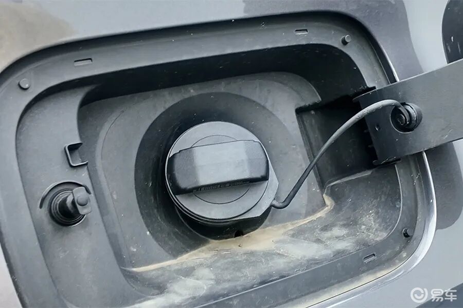 右后翼子板位置是加油口,打开加油口盖板,需要单独按键开启,因为采用高压油箱,要释放汽油蒸汽压力。