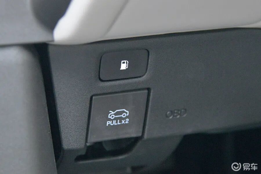 这辆车的油箱盖板开关并不在车机内,而是在方向盘下方,靠近前机盖开关的位置。