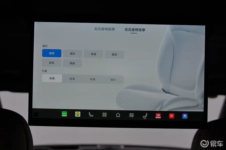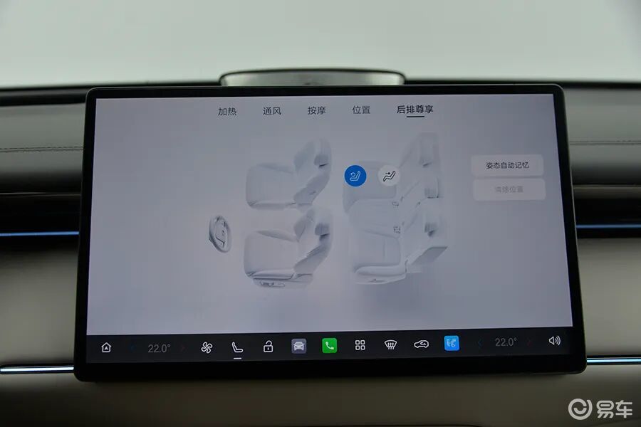 后排座椅舒适度比前排还要好,海绵填充很软,也配有通风加热和按摩。同时后排座椅靠背可以电动调节,俯仰角度比较大,靠在后排看电影,相当惬意。