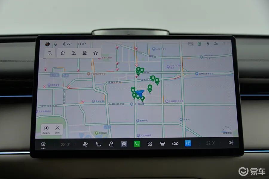 屏幕下方有一组空调物理按键,看似是虚拟电控按键,实际上内置微动开关,使用起来非常方便。