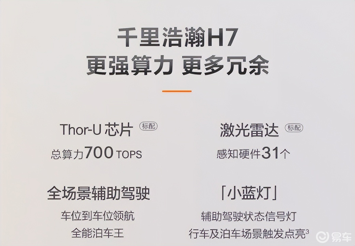 智能辅助驾驶方面,焕新版极氪001用了【千里浩瀚】智能辅助驾驶H7方案,用了激光雷达在内的31个感知硬件,搭配英伟达Thor-U芯片(700 TOPS),可实现全场景辅助驾驶,同时配备辅助驾驶小蓝灯。