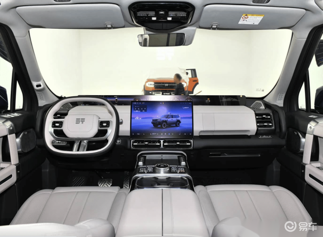 内饰方面,捷途纵横G700设计较为简约,采用横向与纵向元素的结合,呈现出路虎车型或越野车型的设计理念。车内配备了15.6英寸悬浮式中控屏,中控台前端还有一块35.4英寸的贯穿式天际屏,这种设计在越野时可显示更多行车数据。此外,副驾驶区设有扶手,中控台区域配备多个物理按键,这些设计均符合越野车的需求。